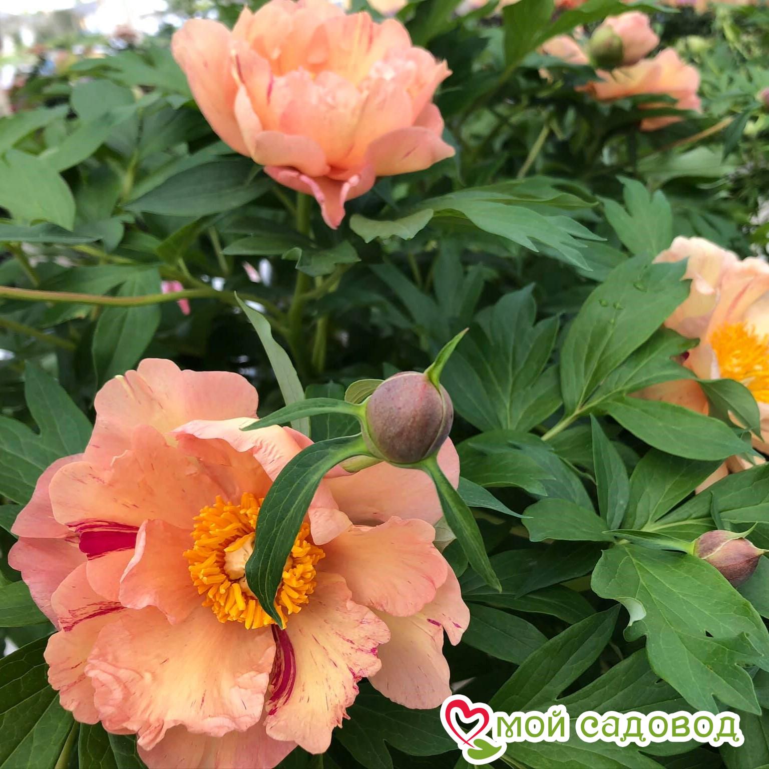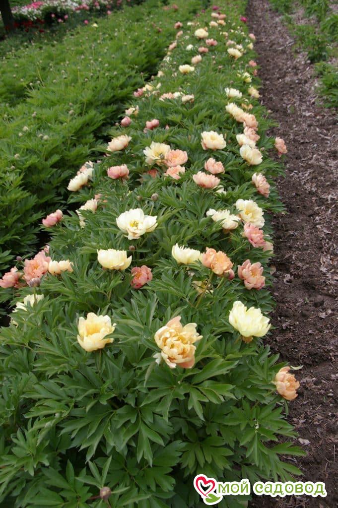 Сорт Сингин Ин Зе Рейн — ИТО-гибрид с полумахровыми крупными очаровательными цветками нежно-жёлтого, оранжевого и розового оттенков. Цветение обильное, но неодновременное, за счёт чего куст выглядит не однотонно, а переливается нежными солнечными красками. Листья крупные, глянцевые тёмно-зелёные. Невероятно красиво смотрится в цветниках, не вытягивая на себя внимание, но задавая настроение всей композиции. Сорт Singing in the Rain отличается отменным здоровьем, не прихотлив и устойчив к вредителям и болезням. Прекрасный сорт для срезки и создания восхитительных букетов. Купить качественные пионы этого великолепного сорта вы можете в нашем питомнике. Место посадки Для посадки пионов понадобится защищенное от ветров место с хорошей освещенностью. Сорта светлой окраски, а также пионы с простыми и полумахровыми цветками можно посадить на частично затеняемом участке, это продлит цветение и защитит цветы от выгорания. Почва для посадки Залог успешного цветения пиона в будущем — это подготовка почвы! 1. Подготовка ямы — 70*70 см на скудных песчанистых и торфянистых почвах — 50*50 см на плодородных, окультуренных почвах. ХРАНЕНИЕ ДО ПОСАДКИ: После получения посылки, рекомендуем вскрыть пакет и осмотреть корневище. Почки должны быть плотные и розового цвета. Так же уделите внимание самому корневищу, все сомнительные, потемневшие, сморщенные части удалите, а места среза обработайте зеленкой или залой. Если почки еще не тронулись в рост, а высаживать в открытый почву рано, советуем Вам хранить корневище в холодильнике, обязательно оставляя его в пакете с торфяной смесью или в коробке под снегом. Если почки успели раскрыться это не критично, сохранить до посадки их так же возможно, высадите корень пиона в большой просторный горшок или в любую другую ёмкость.